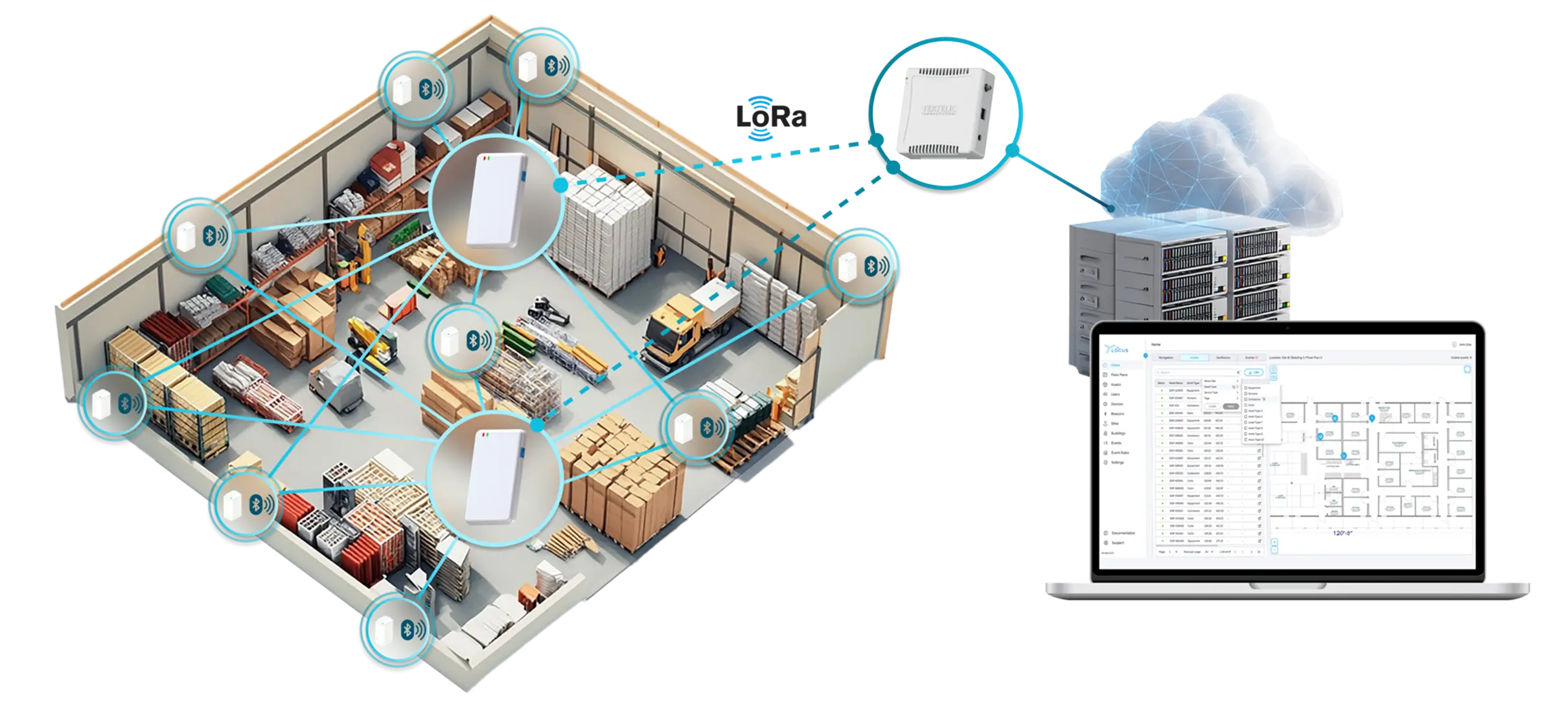 LOCUS RTLS combines multiple technologies — BLE, Wi-Fi, GNSS, and LoRaWAN® — to deliver continuous tracking indoors, outdoors, and even underground. This architecture gives you a complete solution out of the box: network server, management tools, RTLS engine, and integration layer. Everything works together seamlessly, with no complicated custom development or risky third-party data sharing.